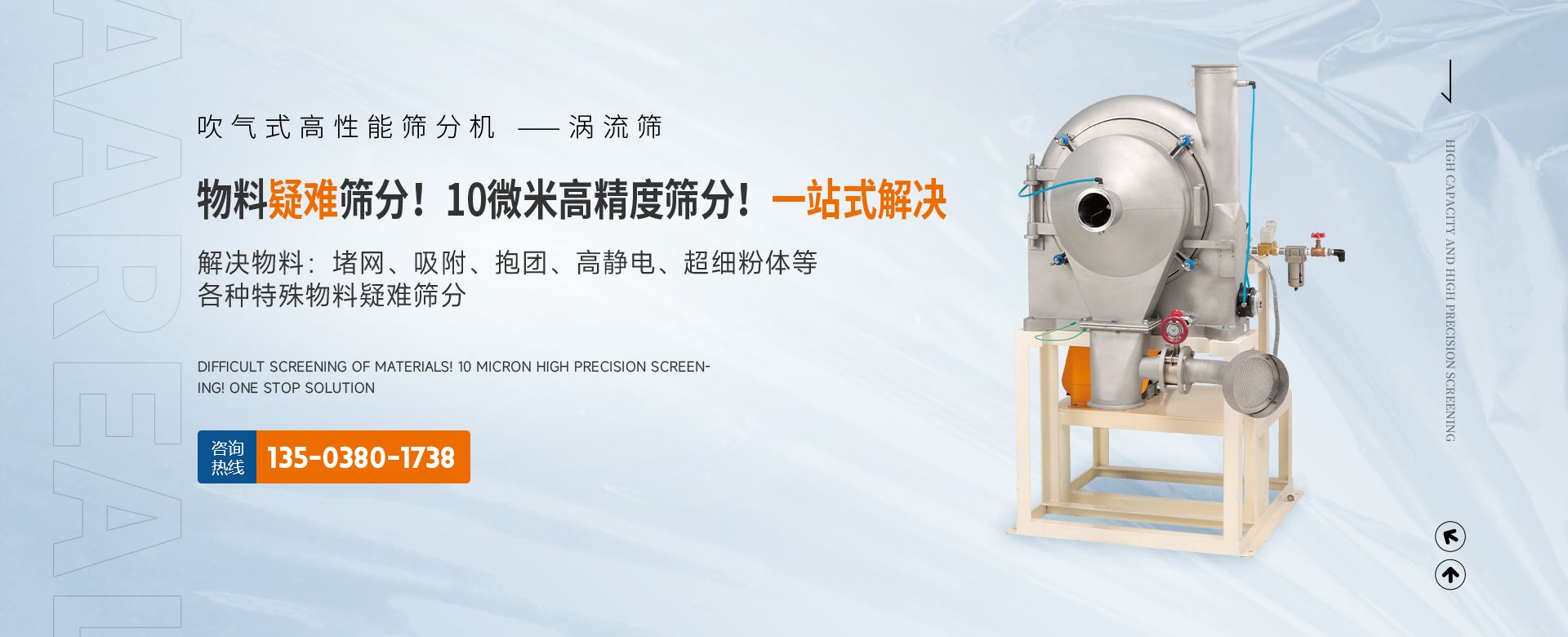 阿 瑞 爾(AAREAL)? 是從事篩分·過濾設備設計和制造的高新技術企業,擁有先進的生產設備、粉體篩分分析實驗室,在中國廣州市設辦事處。祝賀:新鄉市超大產能精細篩分技術工程中心在阿瑞爾(AAREAL)成立?。?!在線大產能篩分和在線動態過濾是阿 瑞 爾(AAREAL)?的產品特點■ 在線大產能篩分,突破了傳統篩分觀念,工業化篩分,實現大產能、高能效篩分。以低故障率、低停機率、低使用成本、高產能、高精度、高能效為您帶來巨大意外收益?!?阿瑞爾(AAREAL)擁有的回轉篩分技術,擁有的近百種篩分解決方案及上千種物料的篩分經驗,會給您展現全新的篩分設備,幫您實現大產能篩分 高精度篩分 疑難篩分。■ 阿瑞爾(AAREAL)的品質保證:阿 瑞 爾(AAREAL)? 是高品質篩分設備制造商高品質是阿 瑞 爾(AAREAL)? 質量準則。優品設備 合理篩分是阿 瑞 爾(AAREAL)?回報客戶的驗收標準?!覀儾坏珦碛邢冗M的生產設備,而且對于每一道工序,每一個細節,我們都要精工細作。對于客戶的每一個細微的問題,我們都要認真解決?!闹谱骱陀眯姆帐俏覀儗蛻舻呢熑?。阿瑞爾(AAREAL)是您成功道路上值得信賴的、合作伙伴,以良好的質量、經驗和服務享譽多個國家,確保您安心地選擇每一件產品,阿瑞爾(AAREAL)竭誠與國內外商家雙贏合作,共同發展,共創輝煌!阿瑞爾(AAREAL)——您正確的選擇。